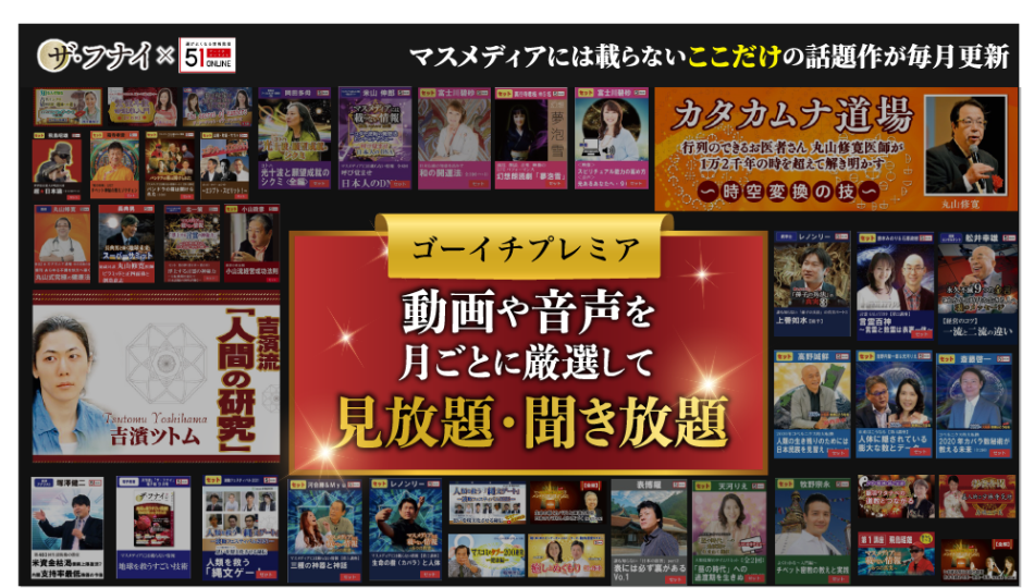 【このカテゴリのコンテンツ一覧】より、各コンテンツをクリックいただくと【中央画面】にて、月刊「ザ・フナイ」の電子書籍やプレミア映像、音声等、様々な種類の有料情報(リッチコンテンツ)を「月額見放題」にてご覧いただくことができます。