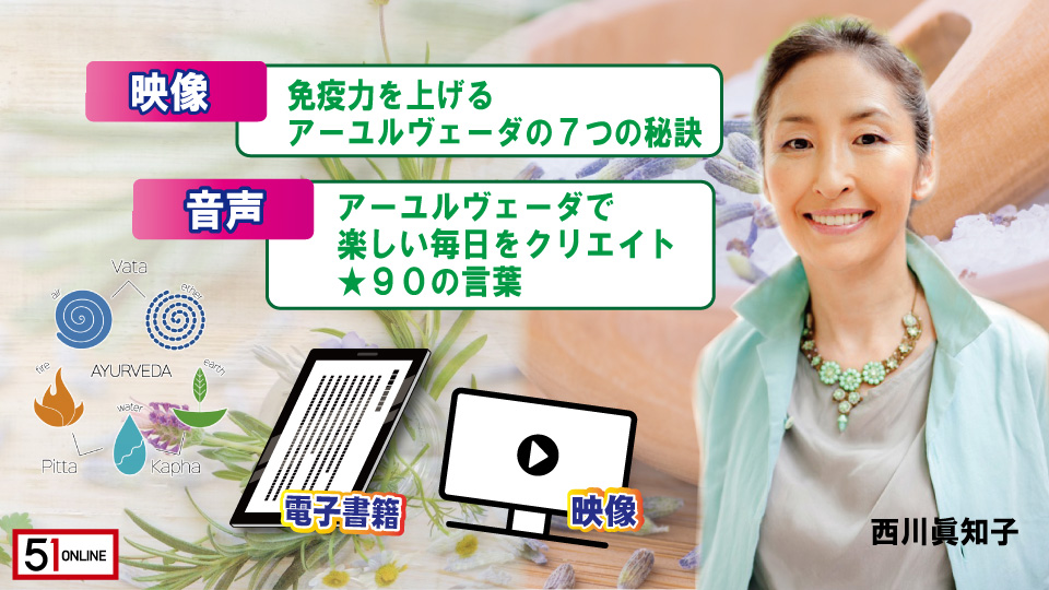 本コンテンツは、①単品購入の場合は1500円(税込)、②月額会員「51プレミア」会員様は視聴可能コンテンツとなっています。1.<映像>免疫力を上げるアーユルヴェーダの7つの秘訣