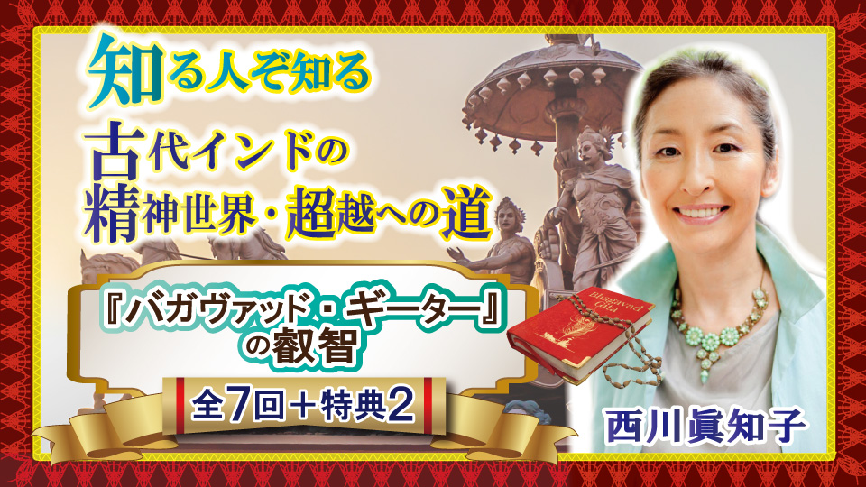 この『バガヴァッド・ギーター』は、インドの精神的基盤そのものであり、多くの偉大な人々に影響を与えてきました。インドの独立の父であるガンジーの心の指針となり、また原子力爆弾の父オッペンハイマーもまたギーターの宇宙観を引き合いにだしています。また神智学のルドルフ・シュタイナーはギーターを題材にした本を書いています。今回この『バガヴァッド・ギーター』をテーマに講義していただくのは、日本におけるアーユルヴェーダの第一人者である西川眞知子先生です。西川先生曰く「人生で一番何度もくりかえし読んできた本であり、自分自身の人生を180度変えた本」。