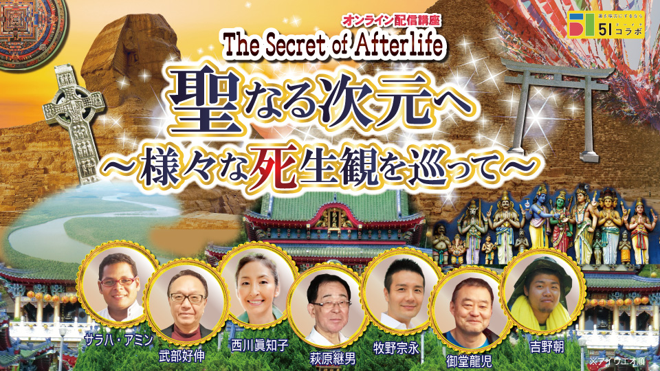 51コラボではWithコロナの時代となった今、古今東西の「死生観」をテーマに、7人の講師を迎え、インド、古代エジプト、神道、ケルト、チベット密教、タオ、アマゾン先住民という切り口で、ほとんど知られていない死生観や秘術も含めて「生と死の思想」について全7回のインターネットオンライン配信による講座を配信いたします。