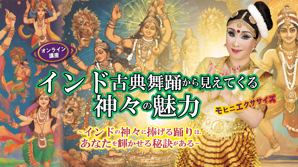 今回、いくつかあるインド古典舞踊の中から南インドの舞踊「モヒニアッタム」の日本におけるの第一人者である丸橋広実さんによる「インド古典舞踊から見えてくる神々の魅力~ インドの神々に捧げる踊りにはあなたを輝かせる秘訣がある~」をオンラインコンテンツでお届けいたします。丸橋さんは日本のみならず、インドにおいても、現地の映画やテレビに出演するなど活動、数々の賞も受賞、自身の舞踊団でモヒニアッタム舞踊公演を実施しています。本場インドでも活躍するパフォーマー、丸橋さんによるインドの神々の魅力の舞踊を交えた神様の解説はとても貴重な機会となるといえるでしょう。