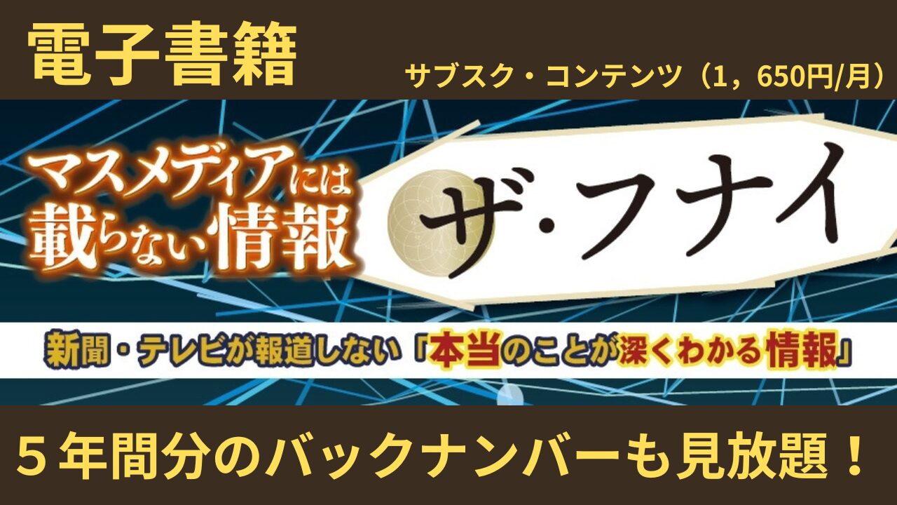 舩井幸雄が創刊し、マスメディアには載らない情報の数々をお届けしている「ザ・フナイ」。その電子書籍版を毎月1,650円で配信中!なんと同時に5年間分のバックナンバーも見放題です