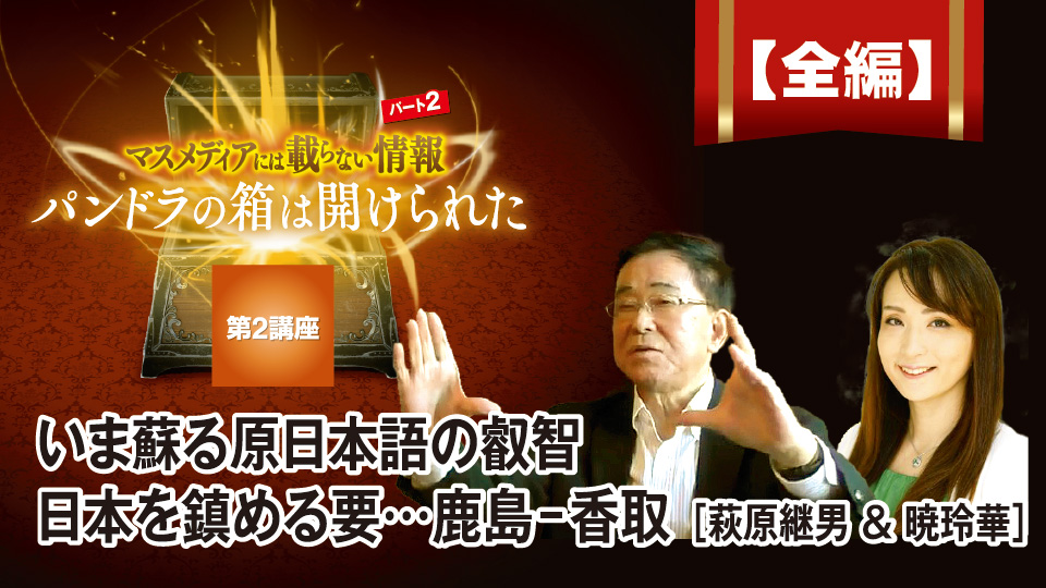 【第2講座オンライン配信:萩原継男&暁 玲華】マスメディアには載らない情報パート2~パンドラの箱は開けられた~【いまよみがえる原日本語の叡智 日本を鎮める要…鹿島-香取】(全3本)